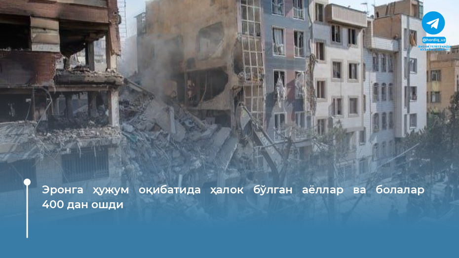 Эрон Соғлиқни сақлаш вазирлиги АҚШ ва Исроилнинг Эронга берган зарбалари оқибатида 400 нафардан ортиқ аёл ва 18 ёшга тўлмаган шахслар...