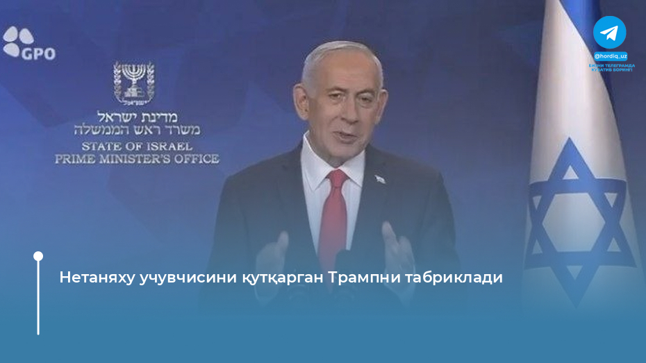 Исроил Бош вазири Эрон осмонида уриб туширилган АҚШ учувчисининг муваффақиятли қутқарилиши муносабати билан Қўшма Штатлар етакчисини қутлади. “Дональд, азиз дўстим,...
